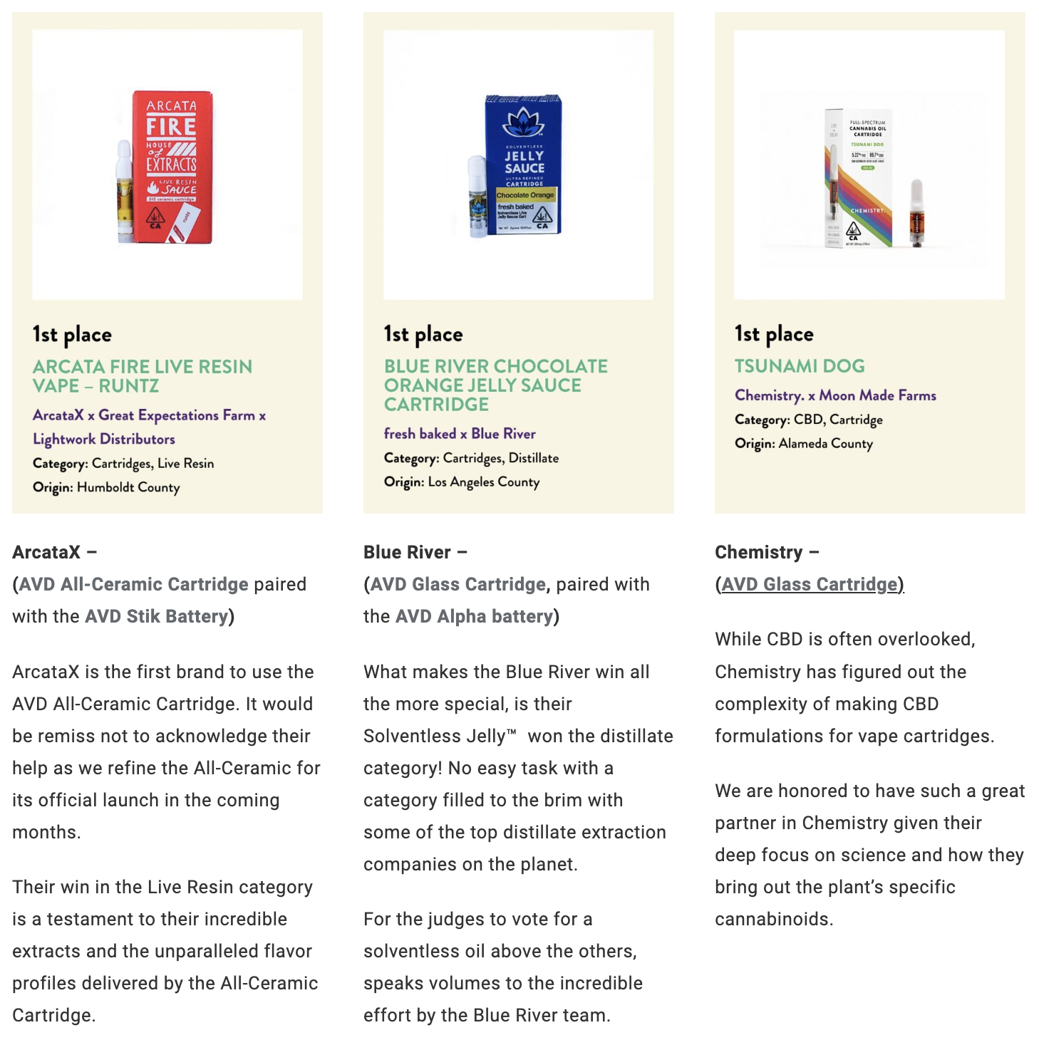 Congratulations ArcataX, Chemistry, and Blue River® for winning first place in the Cup’s most competitive cartridge categories!